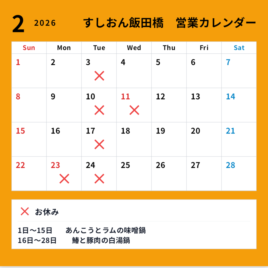 2月のお鍋の内容が決まりましたのでお知らせです。